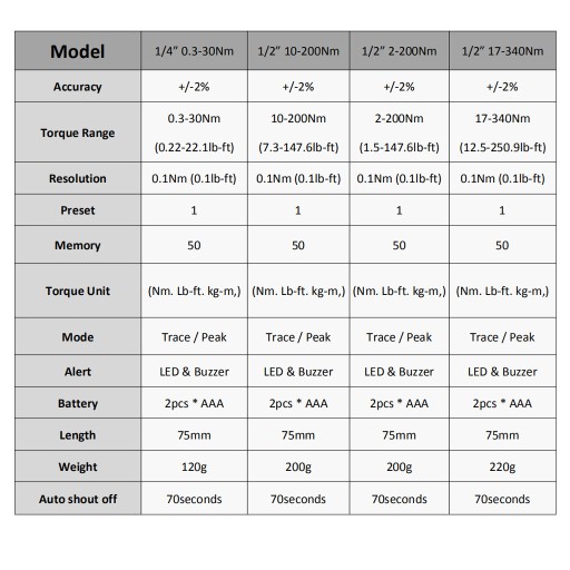 Wyświetlacz LCD pokazuje pomiary Nm (lub kg-m, ft-lb).