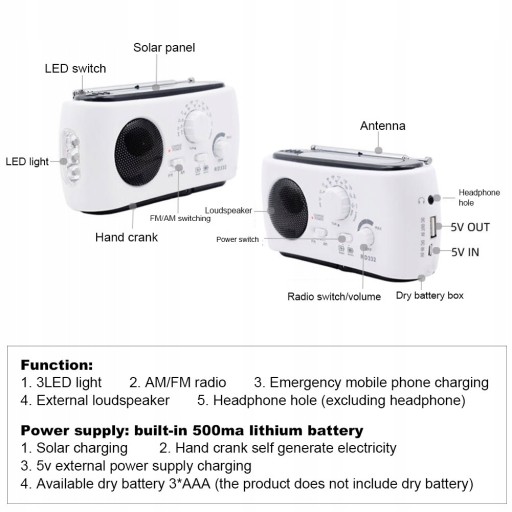 - Typ artykułu: korba ręczna latarka z radiem słonecznym