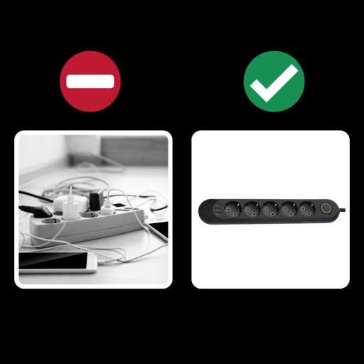 Nasza listwa zasilająca o uniwersalnym zastosowaniu posiada standardowe gniazda sieciowe z uziemieniem w standardzie Schuko, które umożliwiają podłączenie różnorodnych urządzeń elektrycznych, tworząc prawdziwe domowe centrum energii. Niezależnie od tego, czy chodzi o telewizor, komputer, lampki nocne czy inne urządzenia, nasza listwa zapewnia odpowiednie gniazda, aby zasilić wszystkie Twoje elektryczne sprzęty. Teraz możesz mieć wszystko pod kontrolą i korzystać z wygody wielu złączy w jednym miejscu.