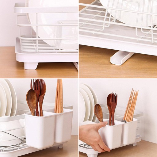 • INSTALACJA USOR: wsparcie dla nas, aby naprawić bucatarie este usor de instalat datorita structurii sale simple.Nu este nevoie de un instrument in proces instalacji.Intre timp, cele patru capace dinsilicon anti-alunecare fac ca suportul sa ramana ferm in postitie . suportul acestui uscator de vase cu scator este separat in doua spatii. Va puteti seta lingurile, cutitele, furculitele si alte ustensile de bucatarie mici in doua categorii. Cu acest support de uscare, puteti avea różnorodne voastre de masa bine organizuj!