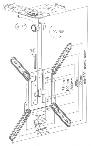 ПОТОЛОЧНОЕ КРЕПЛЕНИЕ ДЛЯ ТЕЛЕВИЗОРА ИЛИ МОНИТОРА BRATCK-LCD-CM344