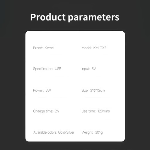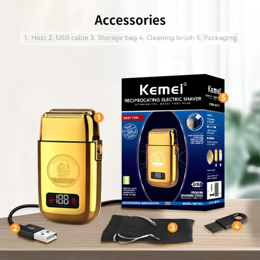 Metalowa obudowa golarka elektryczna akumulatorowa dla mężczyzn włosy broda elektryczna maszynka do golenia łysiny profesjonalna KM-TX3