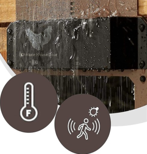 - [Wodoodporny i trwały] Automatyczne drzwi kurnika wykonane są z materiału ABS, bezpieczne i niezawodne, wodoodporne IPX4, odporne na ciepło i zimno. Ponieważ bateria jest uszczelniona, jest bardzo odpowiednia do użytku wewnątrz i na zewnątrz.