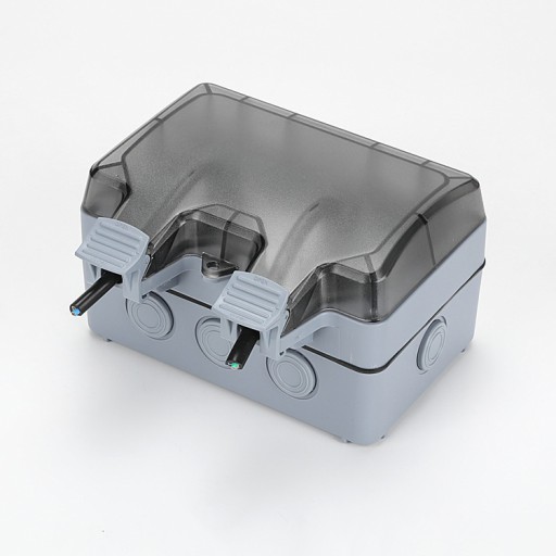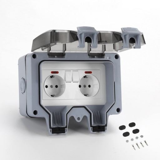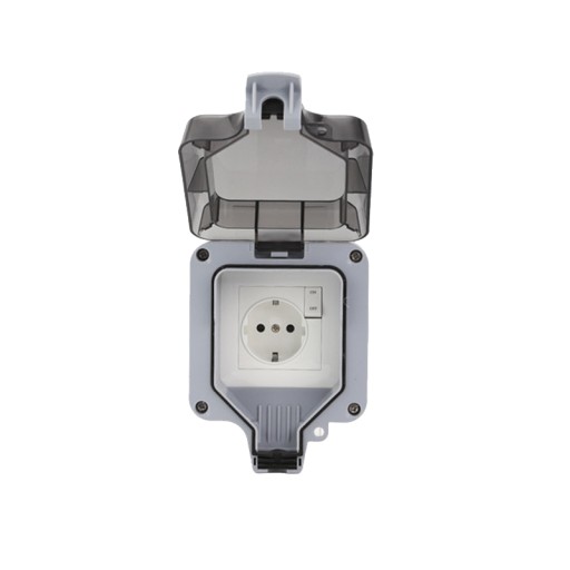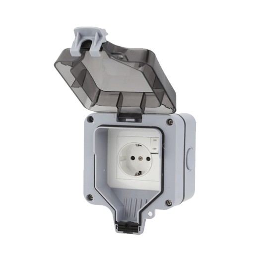 Jest to wodoodporne gniazdo zewnętrzne z ochroną przed deszczem i kurzem.