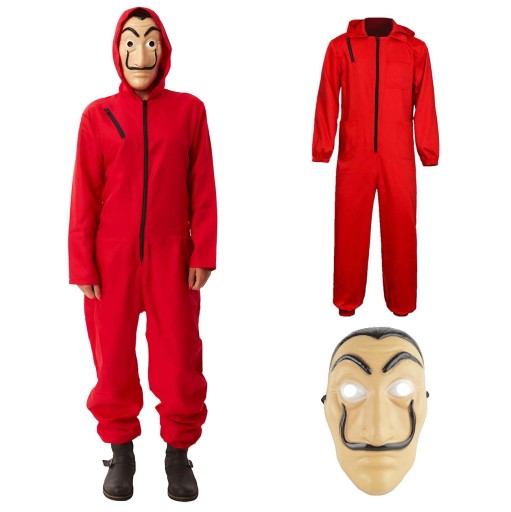 ✅ charakterystyczny czerwony kombinezon i maska Salvadora Dali
