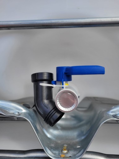 Zbiornik wyposażony w dolny zawór do opróżniania kontenera oraz w górną, odkręcaną pokrywę do podłączenia do rynny. Możliwość wykorzystania pompy do opróżniania pojemnika przez otwór wlewowy.