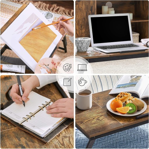 Stolik wykonany w stylu rustykalnym, czyli odpowiednio stylizowanym na wiekowy. Stolik możemy wykorzystać na 2 sposoby: jako stolik pod laptop oraz jako stolik śniadaniowy w sypialni. To od Ciebie zależy czego aktualnie bardziej potrzebujesz. Oczywiście możesz połączyć obie te opcje pracując bądź relaksując się przed komputerem z filiżanką ulubionej kawy.