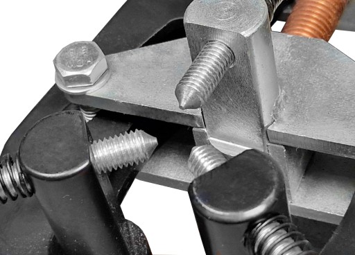 Uniwersalny zacisk ma uchwyt w kształcie litery T i jest łatwy w użyciu. Praktyczny pomocnik do pracy w warsztatach i na budowach.