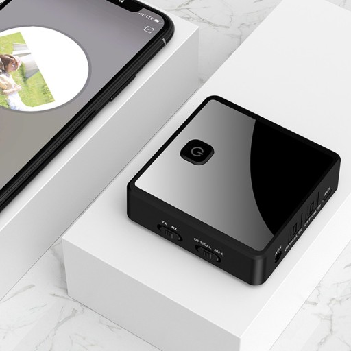 TRYB TX: jest używany jako nadajnik, który może łączyć się z telewizorem, komputerem lub innymi urządzeniami za pomocą kabla audio, bezprzewodowo przesyłać muzykę do słuchawek lub głośnika z obsługą BT (do 2 urządzeń jednocześnie).