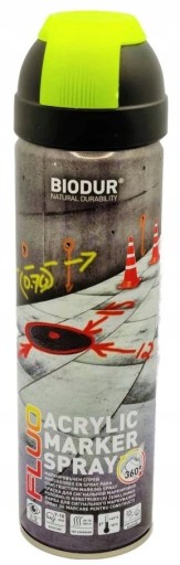 Constrcution marking spray Profesjonalna farba akrylowa przeznaczona do znakowania w pracach geodezyjnych, budowlanych i leśniczych. Idealna do prac na powierzchniach: asfaltowych, drewnianych, metalowych, betonowych, szklanych, kamiennych. Idealna do prac bezpośrednio stosowanych na grunt w trudnych warunkach atmosferycznych.