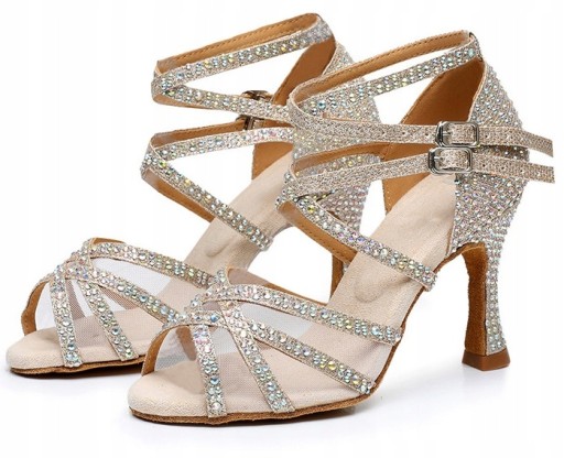 BUTY DO TAŃCA TANECZNE SZAMPAŃSKIE ZDOBIONE 41 Wysokość obcasa 9 cm
