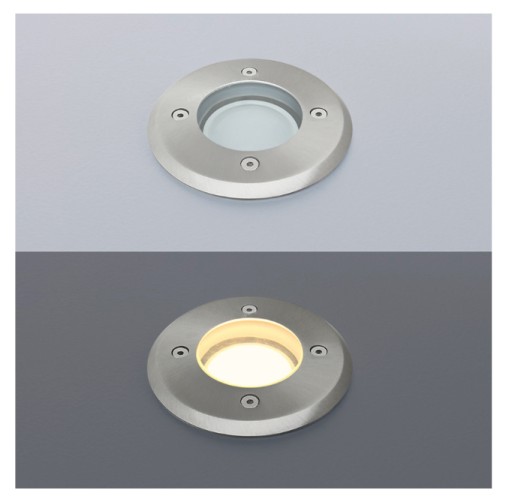 Oprawa najazdowa SuperLED wykonana ze stali nierdzewnej w kolorze INOX (chrom) z dodatkowym szkłem hartowanym osłaniającym żarówkę.