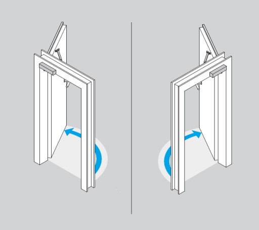 Montaż samozamykacza po stronie przeciwzawiasowej (zawiasy są z drugiej strony drzwi):