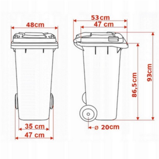 ✔️UDŹWIG - dla 120L aż do 60 KG masy frakcji odpadowej oraz 110 KG dla 240-litrowego pojemnika - dostosowane do unijnych wymogów.