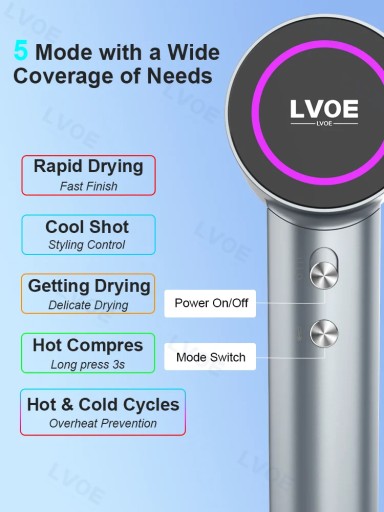 Высокоскоростной анионный фен быстро сохнет благодаря силе ветра.