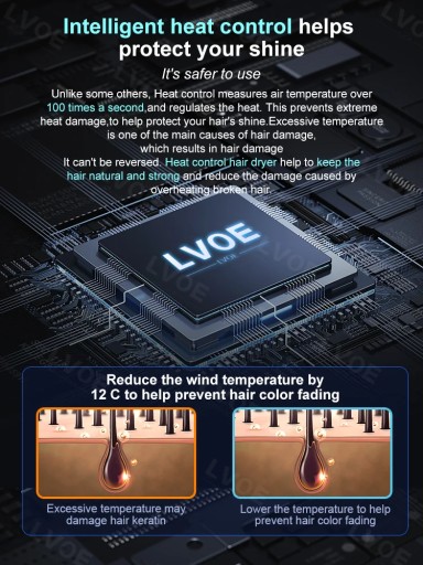 Kontrola, niski poziom hałasu, 410g lekki, 5 inteligentny tryb ochrony włosów.