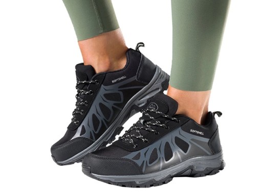 OBUWIE TREKKINGOWE DAMSKIE SOFTSHELL CZARNE SZNUROWANE SZARE DODATKI