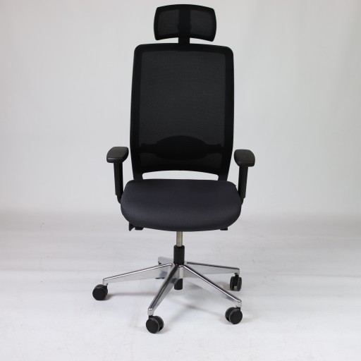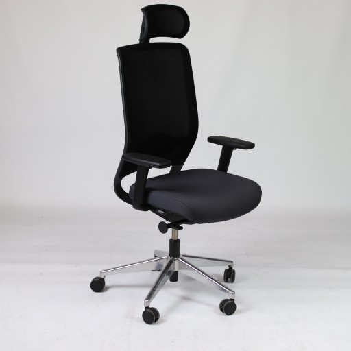 - Wysokiej klasy materiał w kolorze czarnym . Nogi z polerowanego aluminium oraz super kółka na wykładzinę.