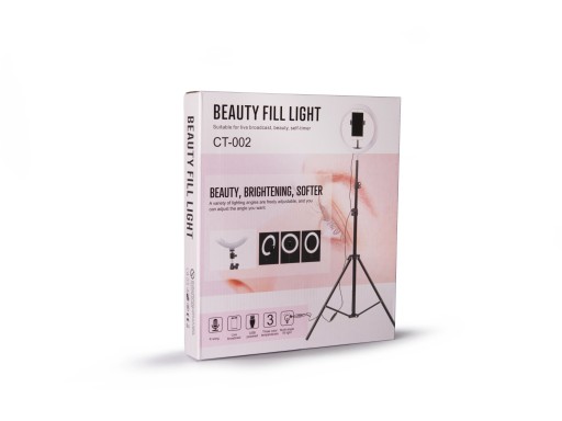 Nowoczesna, pierścieniowa konstrukcja lampy umożliwi równomierne oświetlenie twarzy lub innego obiektu.