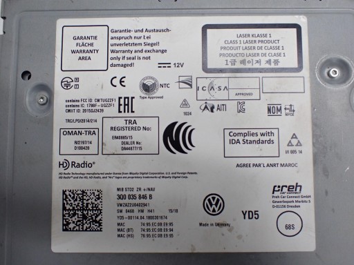 NAWIGACJA NAVI RADIO FABRYCZNA ORYGINAŁ 3Q0035846B 5G6919605B 6C0035501G VW POLO 2G VI 18R