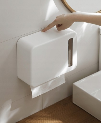Parametry produktu: Rozmiar: 270*90*195mm Kolor: kość słoniowa Model: W-0156 Waga: 550g Pojemność: XL ręcznik papierowy 200 arkuszy (222mm*226mm) Materiał: Wysokiej jakości ABS PS samoprzylepny podkład SEBS PET Montaż: na ścianie bez podstawy (samoprzylepny podkład bez stóp) Obciążenie: 2,5 kg