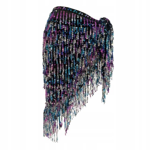 Taniec brzucha chusta na biodra cekinowa spódnica z frędzlami na tematyczne przedstawienie na scenie w kolorze fioletowym i niebieskim
