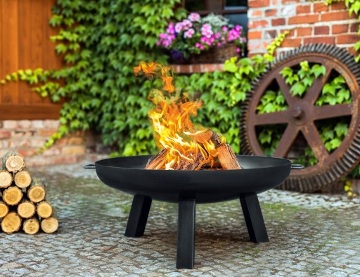 - Wklęsły kształt paleniska sprawia, że rozpalone drewno nie wydobywa się nawet podczas silnego wiatru