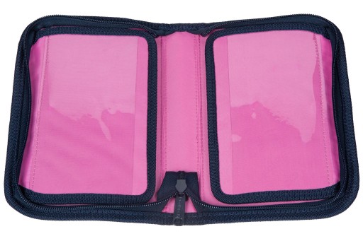 Piórnik posiada jedną dużą przegrodę główną, w której znajduje się gumki na długopisy, kredki, flamastry.