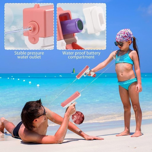 - 💧te w pełni automatyczne pistolety na wodę dla dzieci są wykonane z wytrzymałego tworzywa ABS, nietoksycznego, a uchwyt ma antypoślizgową konstrukcję zapewniającą ergonomię.