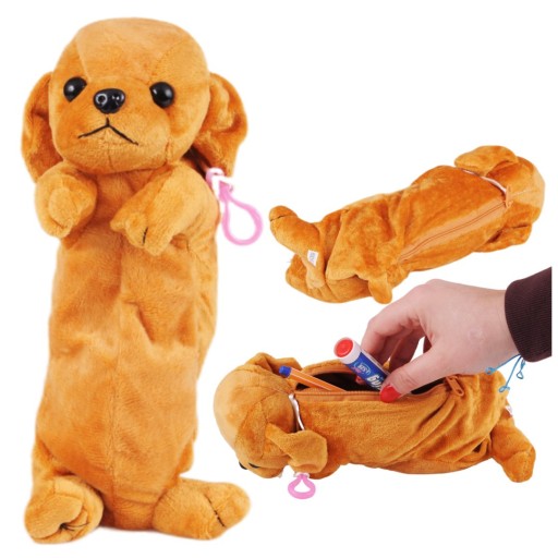 Pluszowy piórnik szkolny w kształcie najlepszego przyjaciela człowieka, doskonały do przechowywania kredek, długopisów i innych przyborów. Piórnik bez problemu pomieści najpotrzebniejsze rzeczy. Zamek błyskawiczny zapobiega wysypywaniu się zawartości. Całość jest zaopatrzona w uchwyt, który umożliwia przypięcie piórnika, np. do plecaka.