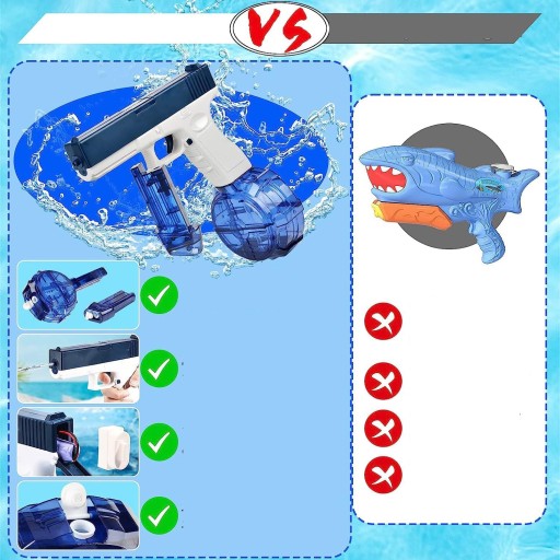 🌊Elektryczny pistolet na wodę: Nasz elektryczny pistolet na wodę to w pełni automatyczny pistolet na wodę dla dorosłych i dzieci, a konstrukcja z jednym przyciskiem jest wygodna dla dzieci. Wystarczy pociągnąć za spust, aby wystrzelić, a woda wystrzeliwuje w sposób ciągły i z dużą prędkością.