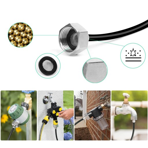 🌺- Ekskluzywny zawór kulowy na rurce mgiełki ułatwia rozpoczęcie/zatrzymanie mgiełki lub ustawienie odpowiedniej ilości strumienia potrzebnej do ochłodzenia (upewnij się, że kran w ogrodzie jest odkręcony).