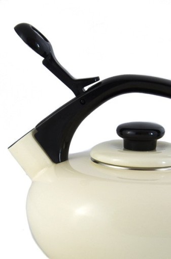 Gwizdek unosi się wysoko, co pozwala wlewać wodę do czajnika bez podnoszenia pokrywki. Wygodny uchwyt nie nagrzewa się oraz nie przypala.