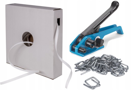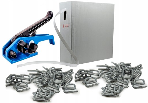 КОМПЛЕКТ ДЛЯ ОБВЯЗКИ ПОДДОНОВ УПАКОВ ПП ЛЕНТОЙ 12ММ + ЗАЖИМЫ + ПП НАТЯЖИТЕЛЬ