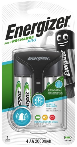 Ładowarka Energizer Pro to ładowarka codziennego użytku do akumulatorków AA lub AAA zasilających wszystkie niezbędne urządzenia.