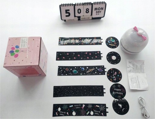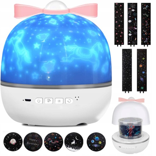 - 5 opcjonalnych trybów scen: Jasny projektor wyświetla różne sceny, takie jak Wszystkiego najlepszego z okazji urodzin, Koń trojański, Łoś leśny, Świat oceanu, Rakietowe UFO itp. Możesz wybrać różne wyświetlane filmy dla różnych scen. Pomóż dzieciom pobudzić ciekawość, wyobraźnię i kreatywność.