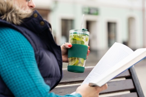 SZCZELNA POKRYWKA, DWUFUNKCYJNE ZAMYKANIE ORAZ SZKLANA SŁOMKA W ZESTAWIE