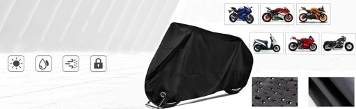 Pokrowiec na motocykl wykonany jest z wytrzymałej tkaniny Oxford o skutecznej izolacji termicznej, ochronie przed promieniowaniem UV i właściwościach hydrofobowych.