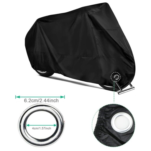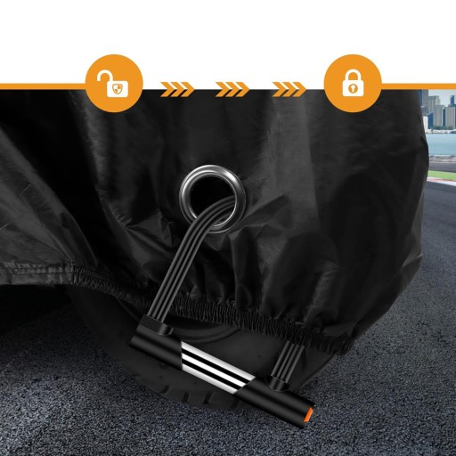 Wodoodporny pokrowiec na motocykl ma dwa otwory z przodu i zatrzask z tyłu, przez który można założyć blokadę motocykla, zapewniając bezpieczeństwo motocykla nawet w wietrzne dni i zapobiegając kradzieży.