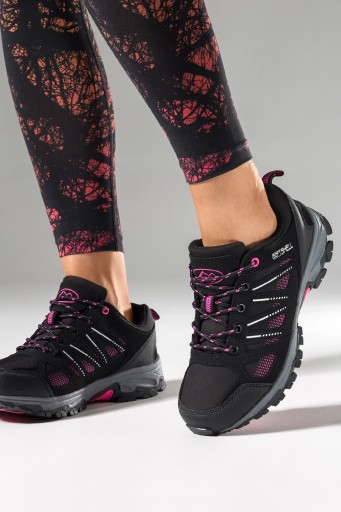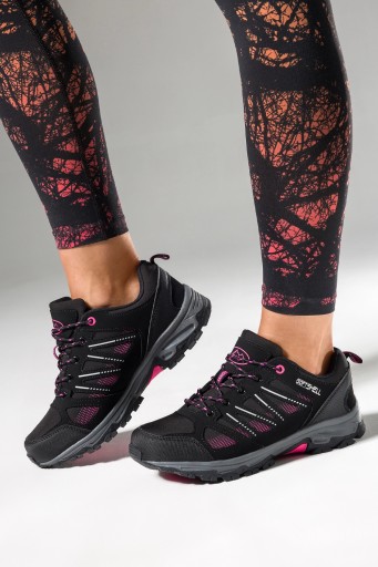 OBUWIE TREKKINGOWE DAMSKIE SOFTSHELL CZARNE SZNUROWANE RÓŻOWE DODATKI