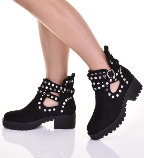 БОТИНКИ ЖЕНСКИЕ ВЕСЕННИЕ, ЗАМШЕВЫЕ, УКРАШЕННЫЕ СТРУЙАМИ, ВЫСОКИЙ КАБЛУК