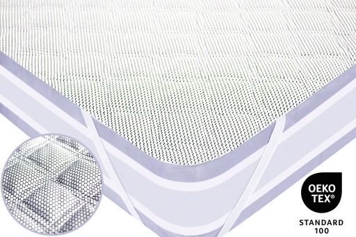 GÓRNA WARSTWA ochraniacza to najwyższej jakości neutralna i nie uczulająca skóry, miękka pikowana 100% Poliestrowa tkanina antyalergiczna o nowoczesnej strukturze plastra miodu, która jest przyjemna w dotyku. Pikowanie przy użyciu nowoczesnych maszyn ultradźwiękowych, wzmacnia strukturę wypełnienia i czyni ochraniacz bardziej komfortowym. Produkt jest całkowicie wolny od substancji szkodliwych dla zdrowia, i jest bezpieczny dla dzieci. Zastosowanie dwukolorowej struktury plastra miodu, sprawia że pikowany ochraniacz na materac jest znacznie bardziej wytrzymały oraz mniej podatny na zabrudzenia.