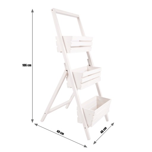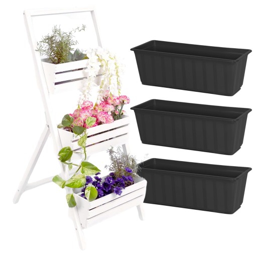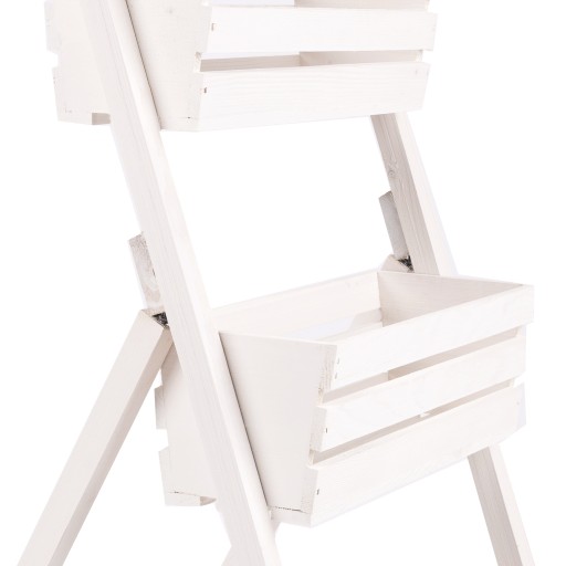Stwórz wyjątkową atmosferę w swoim ogrodzie lub wnętrzu dzięki kwietnikowi drewnianemu kaskadowemu na 3 donice w kolorze białym. Połączenie elegancji z funkcjonalnością sprawia, że będzie to nie tylko ozdoba, lecz również praktyczny element Twojej przestrzeni.