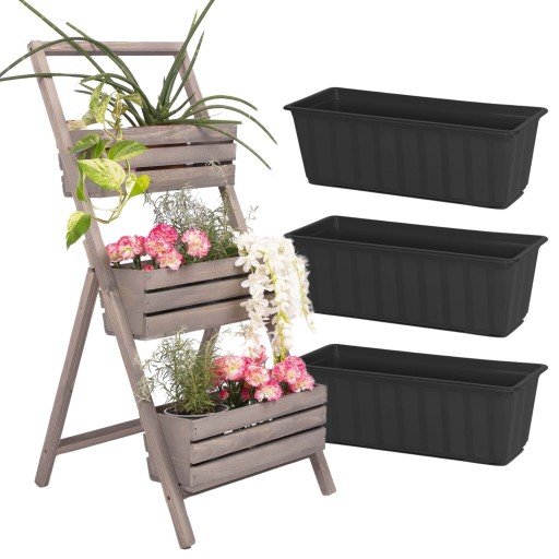 KWIETNIK STOJĄCY DREWNIANY SZARY KASKADOWY 3 RZĘDY Z TRZEMA WKŁADAMI