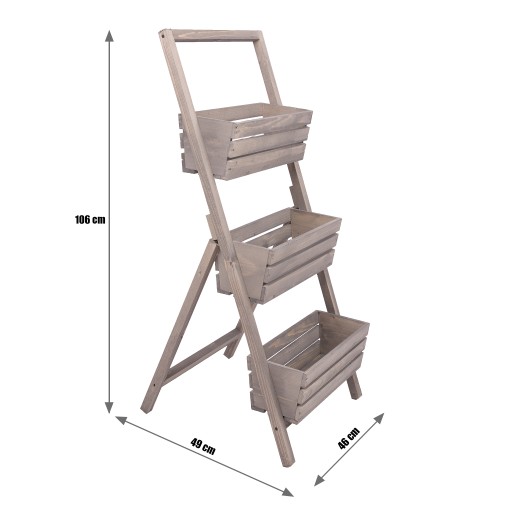 Kwietnik drewniany kaskadowy na 3 donice w kolorze szarym to nowoczesny, elegancki i funkcjonalny element dekoracyjny, który zachwyca swoim wyglądem i uniwersalnym zastosowaniem.