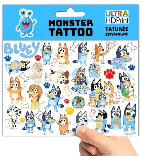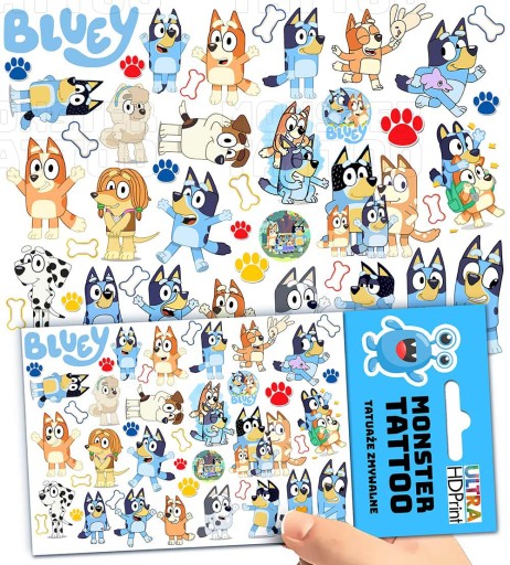 TATUAŻE ZMYWALNE TYMCZASOWE DLA DZIECI DZIECIĘCE BLUEY WZORY ORYGINALNE