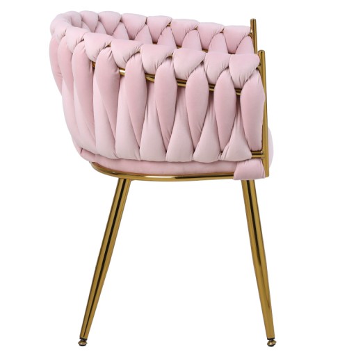 Fotel welurowy Velaco to wyjątkowo wysokiej jakości produkt, który natychmiast przyciąga uwagę swoim niepowtarzalnym stylem. Jego elegancki i oryginalny design doskonale współgra zarówno z nowoczesnym, jak i futurystycznym wystrojem wnętrz. Wyjątkowe plecione oparcie w połączeniu z harmonijną kolorystyką tworzą doskonały duet, który nadaje wnętrzu niezwykłą estetykę. Nie tylko wygląd, ale także komfort jest priorytetem tego fotela. Miękka tkanina welurowa jest przyjemna w dotyku, a oparcie zapewnia wygodę podczas użytkowania, umożliwiając dłuższe chwile odpoczynku i relaksu. Dodatkowo, poduszka siedziska, która jest bardzo szeroka dostarcza miękkości i komfortu, eliminując uczucie dyskomfortu podczas wielogodzinnego siedzenia. Solidny stelaż wykonany z metalu nie tylko zapewnia stabilność konstrukcji, ale także doskonale komponuje się z kolorem tapicerki. Fotel welurowy Velaco to wybór, który nie tylko zachwyca swoim wyglądem, ale także gwarantuje wyjątkową wygodę i trwałość, co czyni go doskonałym dodatkiem do każdego stylowego wnętrza.