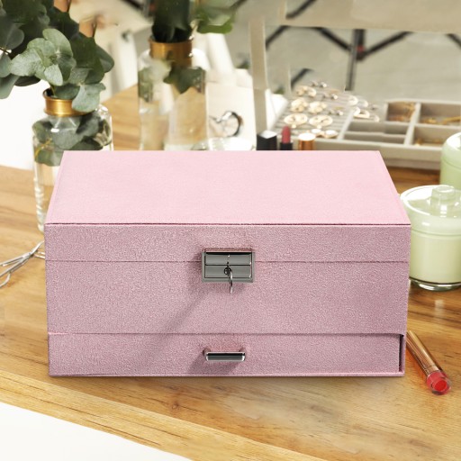 Nasze wielofunkcyjne pudełko na biżuterię nadaje się do porządkowania i przechowywania wszystkich elementów biżuterii. Szuflada do przechowywania ułatwia dostęp do biżuterii. Dzięki wielowarstwowej konstrukcji to pudełko na biżuterię zapewnia dużo miejsca do przechowywania wszystkich naszyjników, bransoletek, kolczyków i pierścionków.