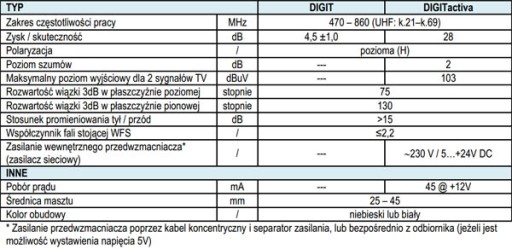 Antena DIGIT przeznaczona jest do odbioru cyfrowych sygnałów telewizji naziemnej z zakresu UHF.
