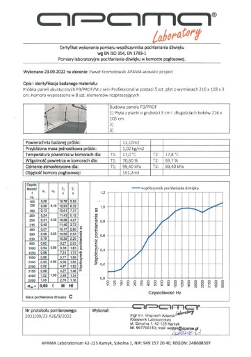 ✅ Oryginalne panele akustyczne firmy APAMA z linii Professional charakteryzują się wysokim współczynnikiem pochłaniania dźwięku. Parametr ten odpowiedzialny jest za ilość energii fal dźwiękowych jaka zostanie pochłonięta przez panele. Dzięki czemu ilość fal odbitych ponownie w stronę źródła dźwięku jest dużo mniejsza.